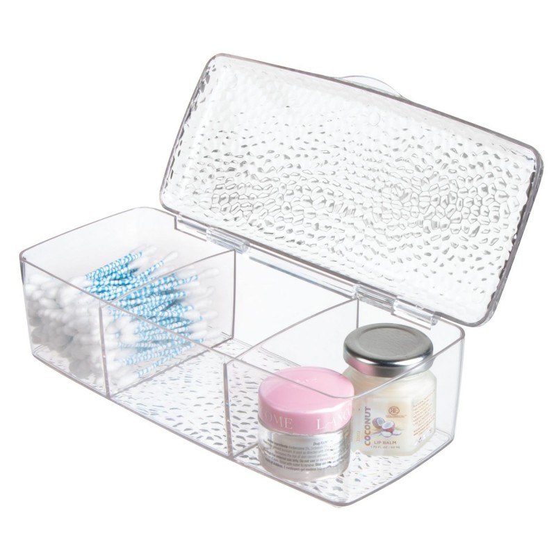 InterDesign / Органайзер с тремя отсеками для хранения ватных шариков,дисков,палочек \"Rain\" (100635)