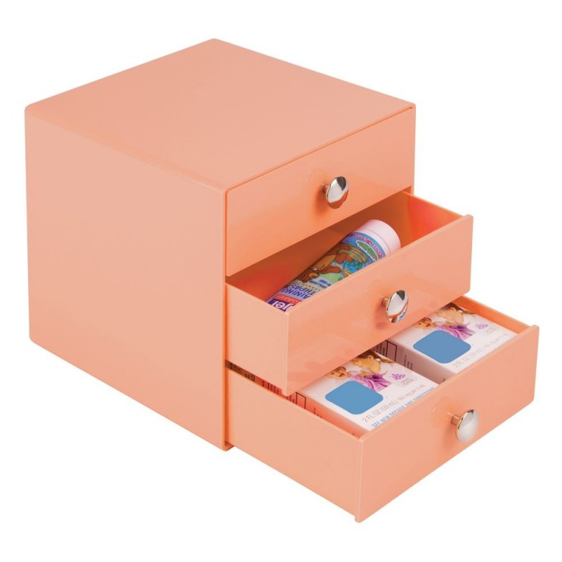 InterDesign / Большой цветной органайзер с 3 выдвижными ящиками Коралловый (100031)