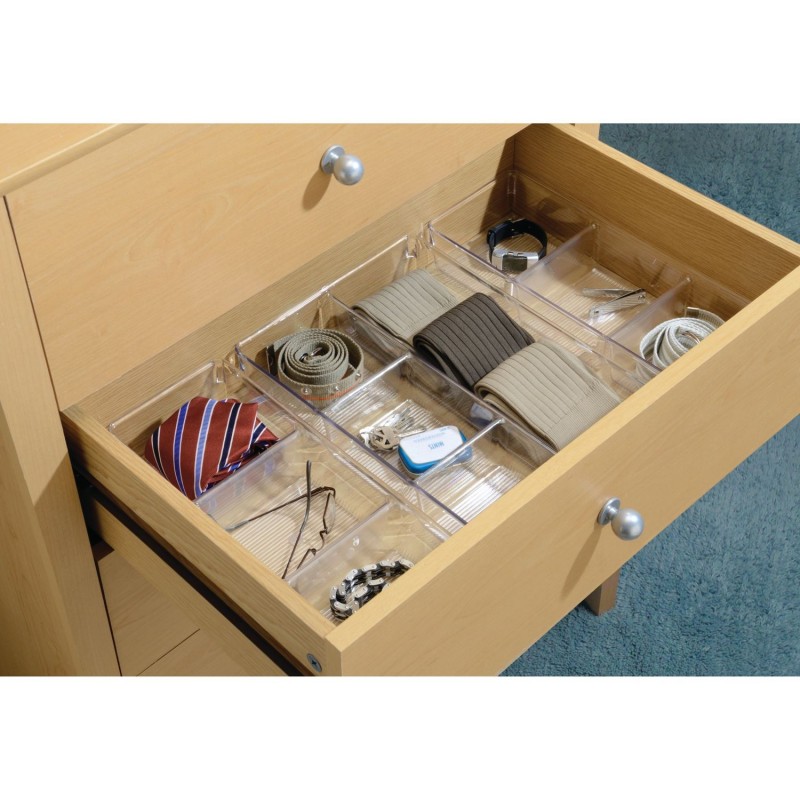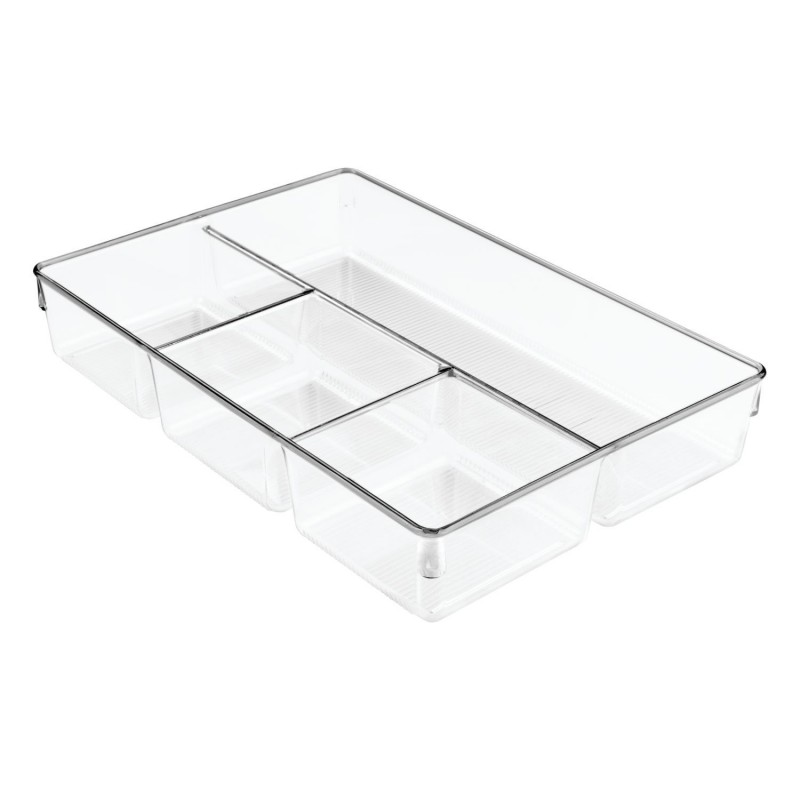 Оригинальный и вместительный органайзер позволит вам упорядочить ваши аксессуары. Он состоит из трех небольших отсеков с одним большим отделений для возможности хранения аксессуаров разного размера в одном месте. Прозрачный пластик будет отлично смотреться на туалетном столике или в ящике комода.