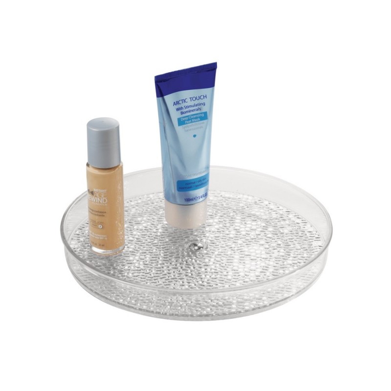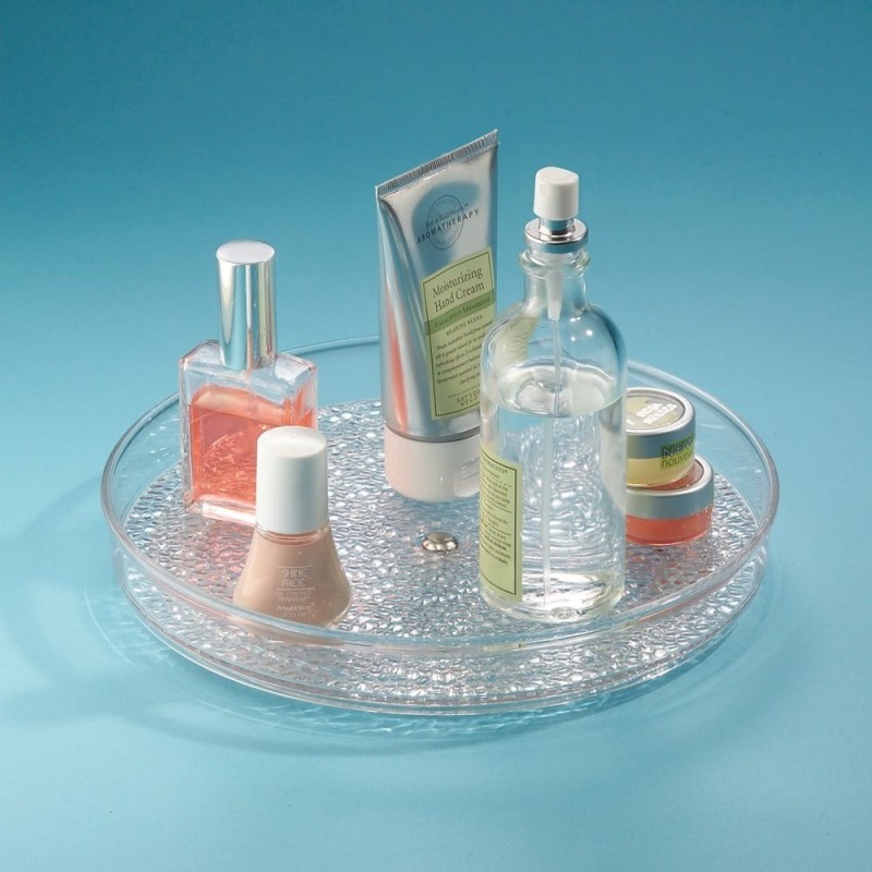 Органайзер-поднос серии Rain от InterDesign. Изготовленный из прозрачного и прочного пластика, плавно вращается вокруг своей оси. Поднятые края предотвращают падение содержимого лотка. Отлично подходит для косметики, кистей, дезодорантов, медикаментов и аксессуаров