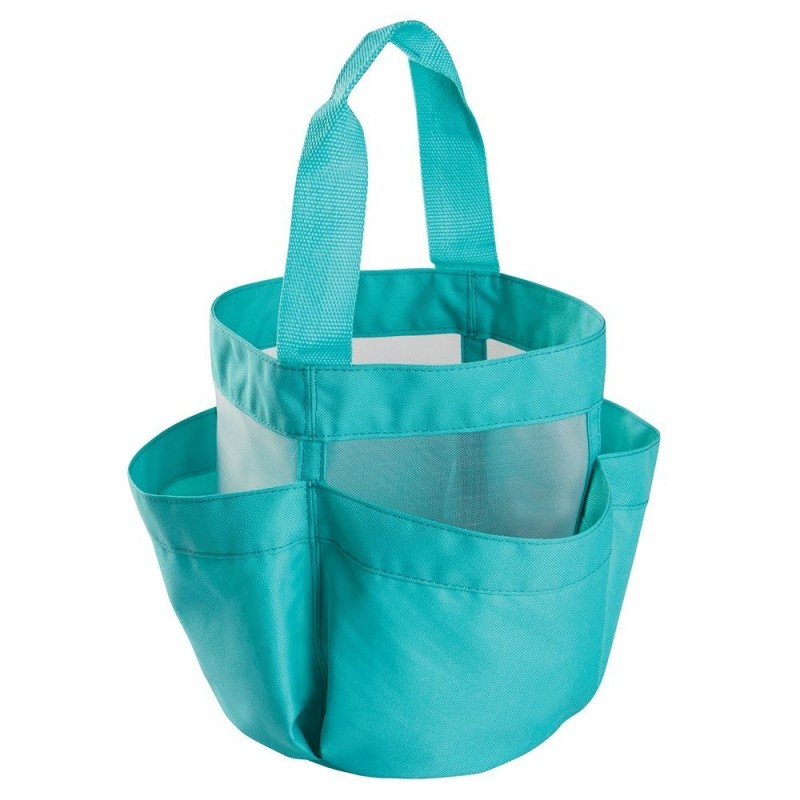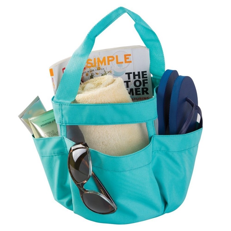 Для прогулки на пляже, или похода в спортзал, вам просто необходима наша сумка-органайзер из прозрачного полиэстера. Она имеет нежный голубой оттенок, легко моется и не боится воды. Очень вместима. В ее карманах можно хранить солнцезащитный крем, лосьон для тела, гель для душа и другие косметические средства.