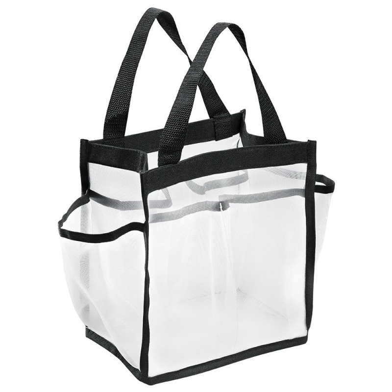 Как незаменимый аксессуар для похода на пляж, природу или бассейн мы предлагаем вам нашу сумку-органайзер для косметики и туалетных принадлежностей. Вы легко сможете найти нужные вам вещи, так как она изготовлена из прозрачной синтетической сетки. Проста в уходе, легко моется и очень быстро высыхает. Дизайн в черно-белых тонах требует безупречности и порядка абсолютно во всем.