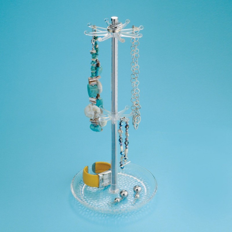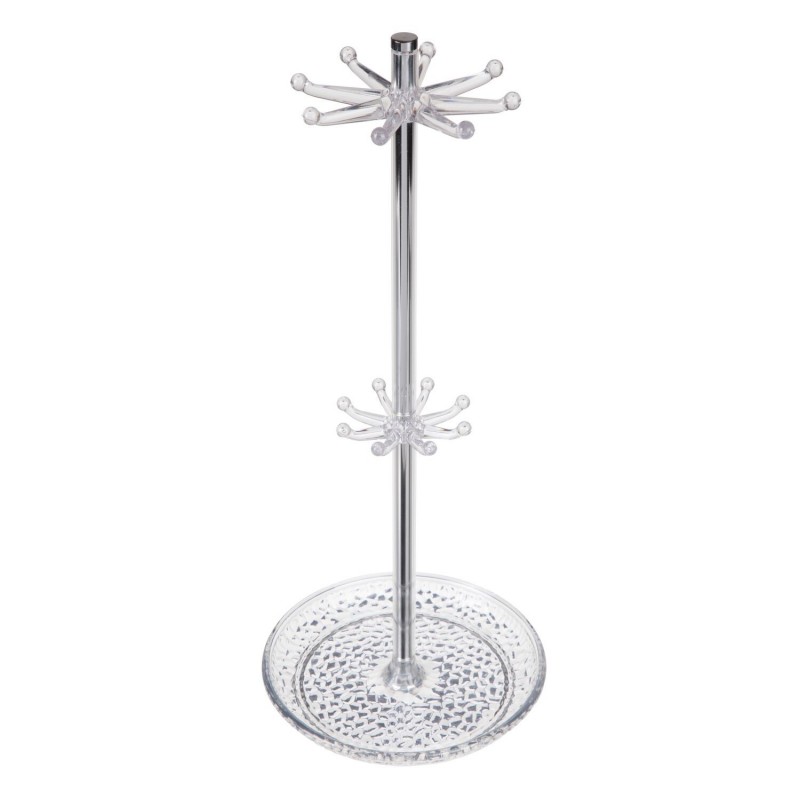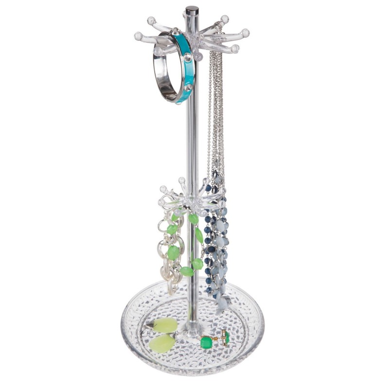 Rain Jewelry Tree - идеальный органайзер для всех ваших украшений. Изготовленное из прозрачного. прочного текстурированного пластика. это ювелирное дерево имеет 16 крючков. 2 уровня для браслетов. часов или ожерелий и поднос на дне для часов. колец и серег.