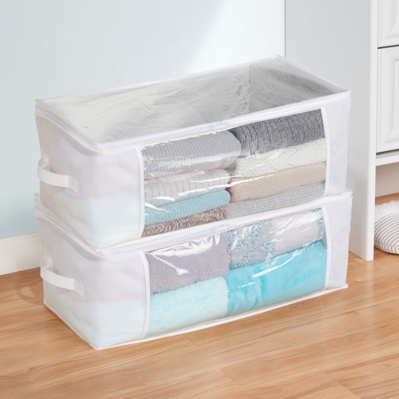 Складной кофр для хранения поможет защитить вашу одежду, постельное белье и другие предметы домашнего обихода от пыли и компактно хранить вдали от глаз. Прозрачные вставки в виде окошек на верхней и передней поверхностях позволяют легко просматривать содержимое. Кофр имеет две застежки "на молнии" и боковые ручки, которые делают переноску с места на место удобной.