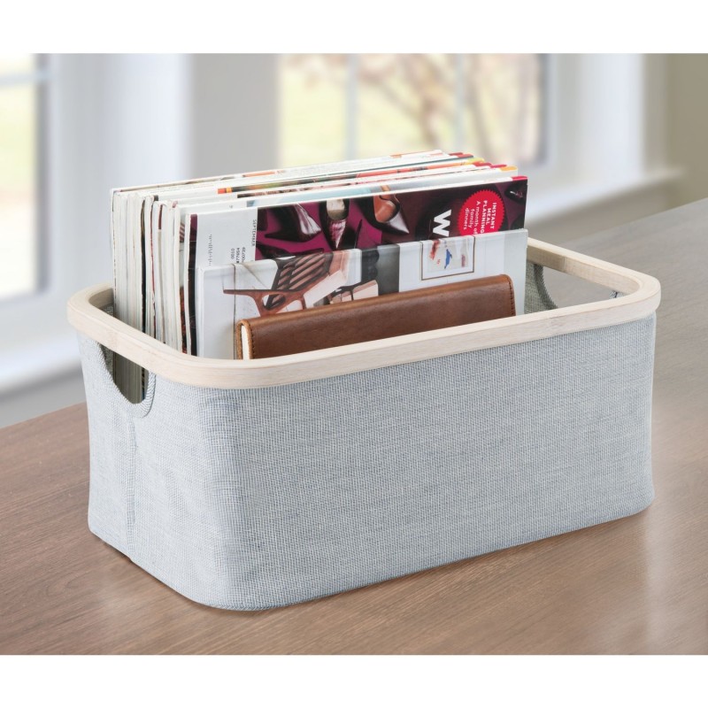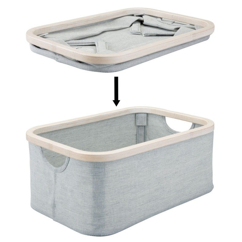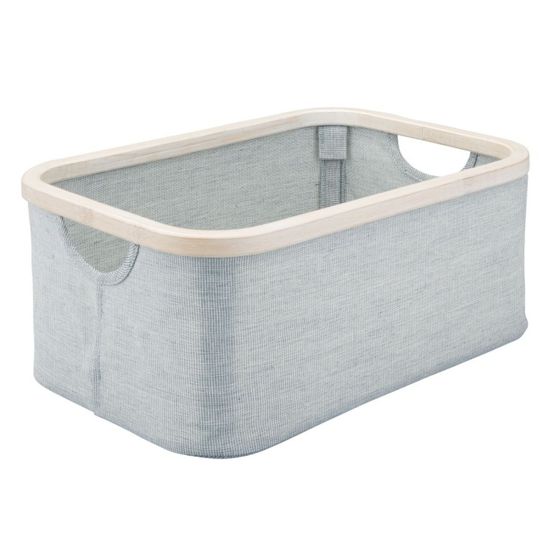Добавьте штрих стиля в ваш дом с корзиной для хранения от InterDesign. Бамбуковый каркас и вместительная основа из ткани со встроенными ручками для переноски делают этот предмет не просто красивой вещью, но и функциональным органайзером. Его легкая конструкция обеспечивает удобство переноски, а его компактные размеры отлично подходят для хранения косметики, туалетных принадлежностей, аксессуаров и т.д.Отстегните четыре угловых держателя на липучке, чтобы сложить для компактного хранения если вы им не пользуетесь.
