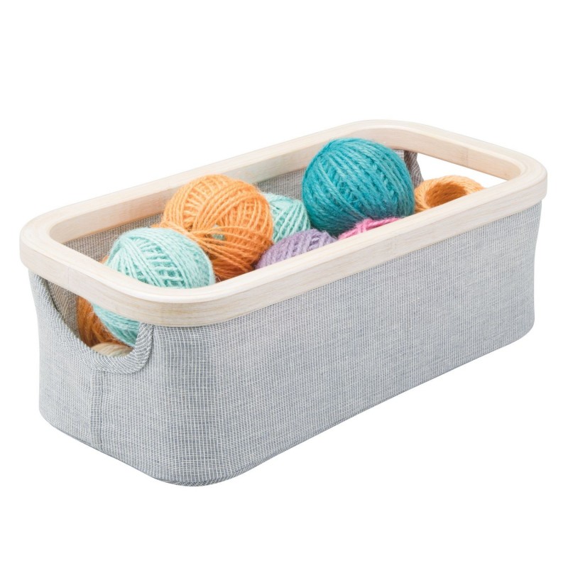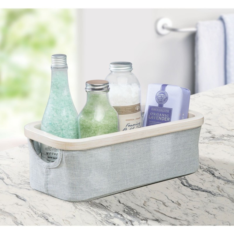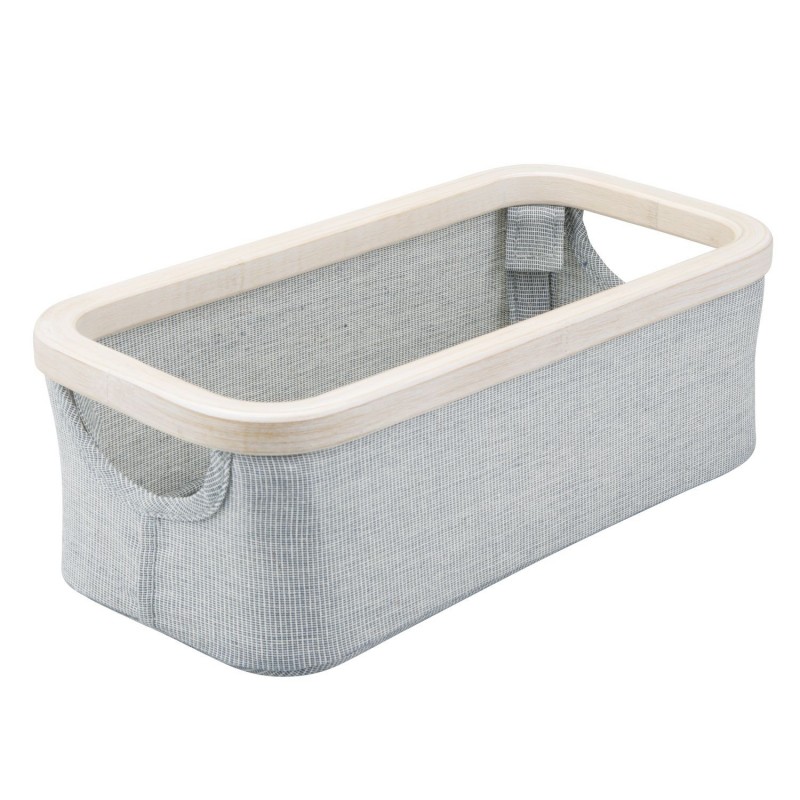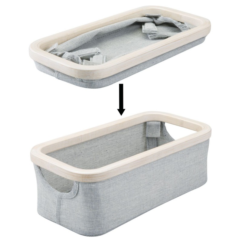 Добавьте штрих стиля в ваш дом с корзиной для хранения от InterDesign. Бамбуковый каркас и вместительная основа из ткани со встроенными ручками для переноски делают этот предмет не просто красивой вещью, но и функциональным органайзером. Его легкая конструкция обеспечивает удобство переноски, а его компактные размеры отлично подходят для хранения косметики, туалетных принадлежностей, аксессуаров и т.д.Отстегните четыре угловых держателя на липучке, чтобы сложить для компактного хранения если вы им не пользуетесь.