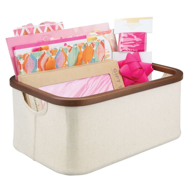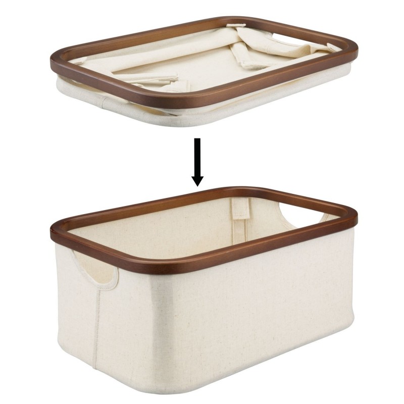 Добавьте штрих стиля в ваш дом с корзиной для хранения от InterDesign. Бамбуковый каркас и вместительная основа из ткани со встроенными ручками для переноски делают этот предмет не просто красивой вещью, но и функциональным органайзером. Его легкая конструкция обеспечивает удобство переноски, а его компактные размеры отлично подходят для хранения косметики, туалетных принадлежностей, аксессуаров и т.д.Отстегните четыре угловых держателя на липучке, чтобы сложить для компактного хранения если вы им не пользуетесь.