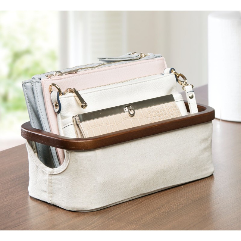 Добавьте штрих стиля в ваш дом с корзиной для хранения от InterDesign. Бамбуковый каркас и вместительная основа из ткани со встроенными ручками для переноски делают этот предмет не просто красивой вещью, но и функциональным органайзером. Его легкая конструкция обеспечивает удобство переноски, а его компактные размеры отлично подходят для хранения косметики, туалетных принадлежностей, аксессуаров и т.д.Отстегните четыре угловых держателя на липучке, чтобы сложить для компактного хранения если вы им не пользуетесь.