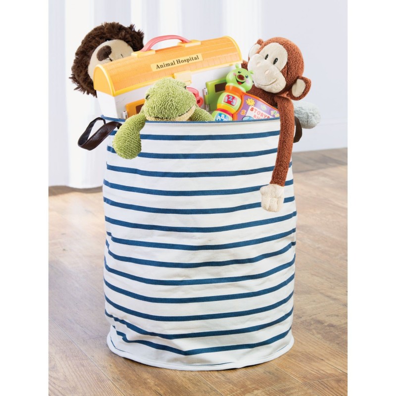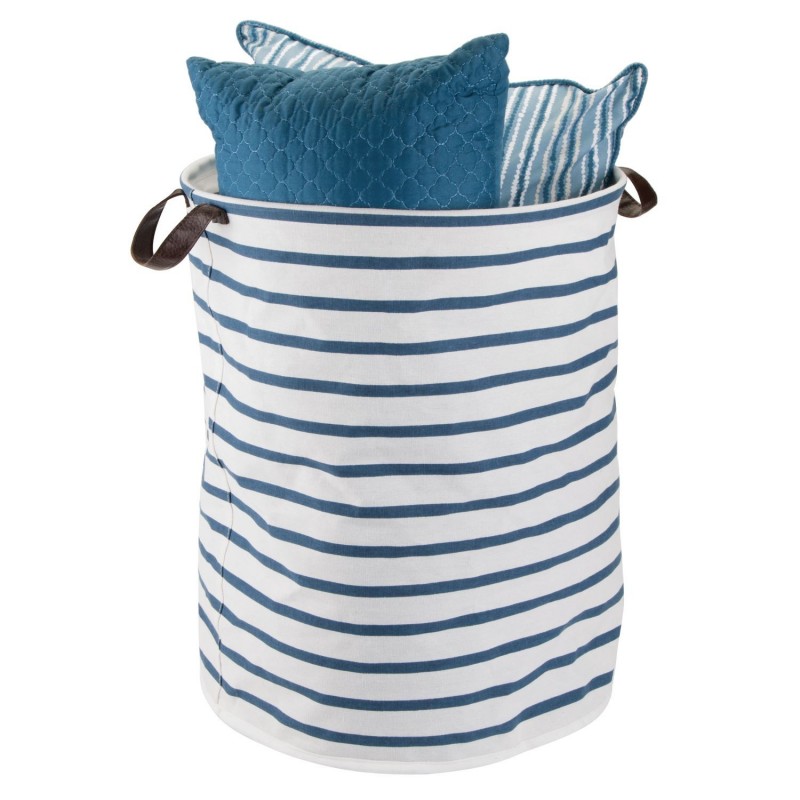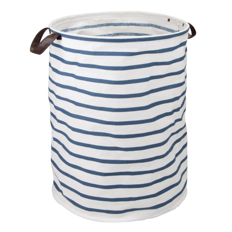 Складной хлопчатобумажный короб для хранения Riley со встроенными ручками и водостойким покрытием. Этот вместительный короб выполнен в привлекательном сине-белой полосатой расцветке, в котором есть две встроенные ручки из коричневой искусственной кожи. Обеспечит легкое хранение в ванной, гостиной, спальне, детской, игровой комнате или где нужна правильная организация пространства. Можно протирать влажной салфеткой от пыли.Отлично подходит для хранения ежедневных предметов первой необходимости, таких как банные полотенца, одеяла, игрушки, обувь, журналы, детские товары.