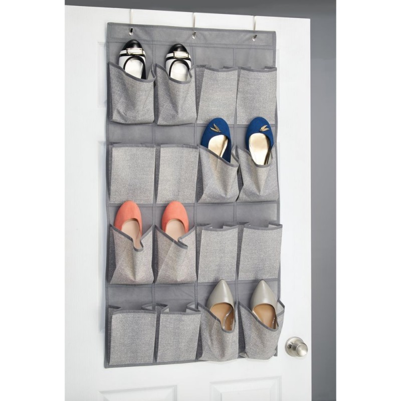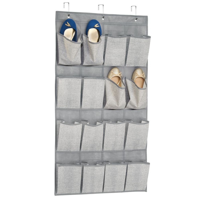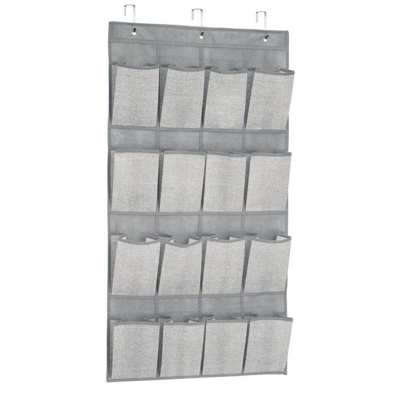 Для более компактного хранения обуви предлагаем вам наш подвесной органайзер. Он крепится на дверь, тем самым помогает освободить дополнительное пространство. Имеет большую вместимость: 16 карманов для 8 пар обуви. Органайзер изготовлен из мягкого светло-серого текстиля. Цветовое решение подойдёт для любого интерьера. В комплект входит 3 металлических крючка для дверей до 4.5см.