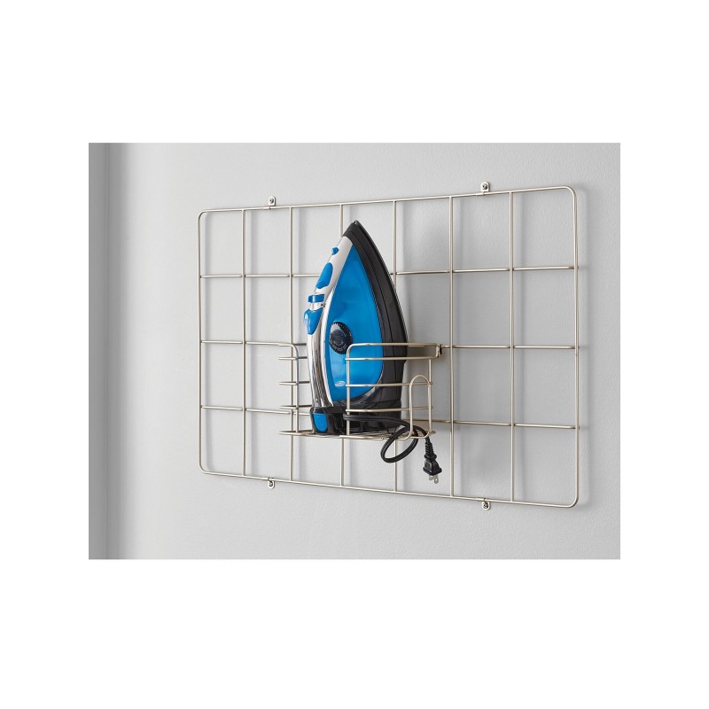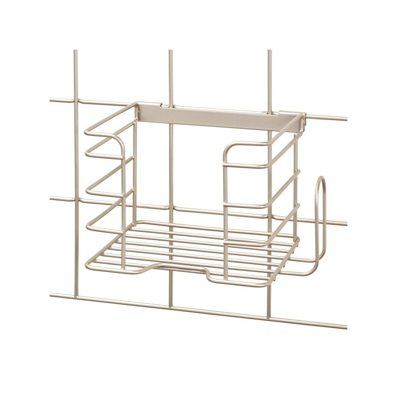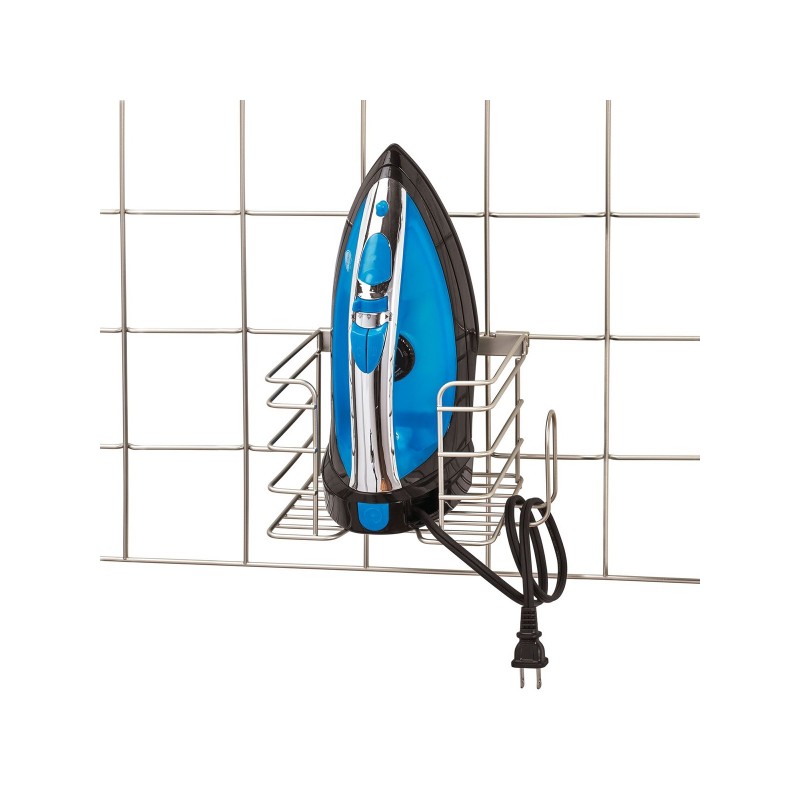 Держатель, крепящийся на модульную панель-сетку, выполнен в виде глубокой корзины с отверстием в передней части. Его можно использовать в качестве подставки для утюга, к примеру, или подставки для любого предмета, когда это необходимо. Внутрь можно положить любые другие приборы, а также косметику, аксессуары, товары для рукоделия, канцелярские принадлежности и прочее.