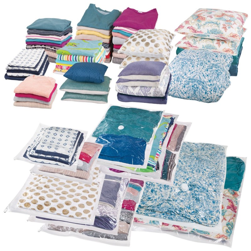 Вакуумные пакеты для хранения. Помогут вам сэкономить до 3-кратного объема пространства. Многоразовые, водонепроницаемые и герметичные пакеты максимизируют ваши возможности хранения при минимальном пространстве. Просто упакуйте вещи в пакет, застегните молнию и используйте пылесос, чтобы сжать его до удобного компактного размера, который вы можете хранить в шкафах, ящиках, под кроватями и многих других местах.