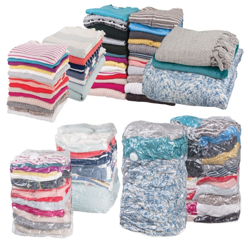 Вакуумные пакеты для хранения. Помогут вам сэкономить до 3-кратного объема пространства. Многоразовые, водонепроницаемые и герметичные пакеты максимизируют ваши возможности хранения при минимальном пространстве. Просто упакуйте вещи в пакет, застегните молнию и используйте пылесос, чтобы сжать его до удобного компактного размера, который вы можете хранить в шкафах, ящиках, под кроватями и многих других местах.
