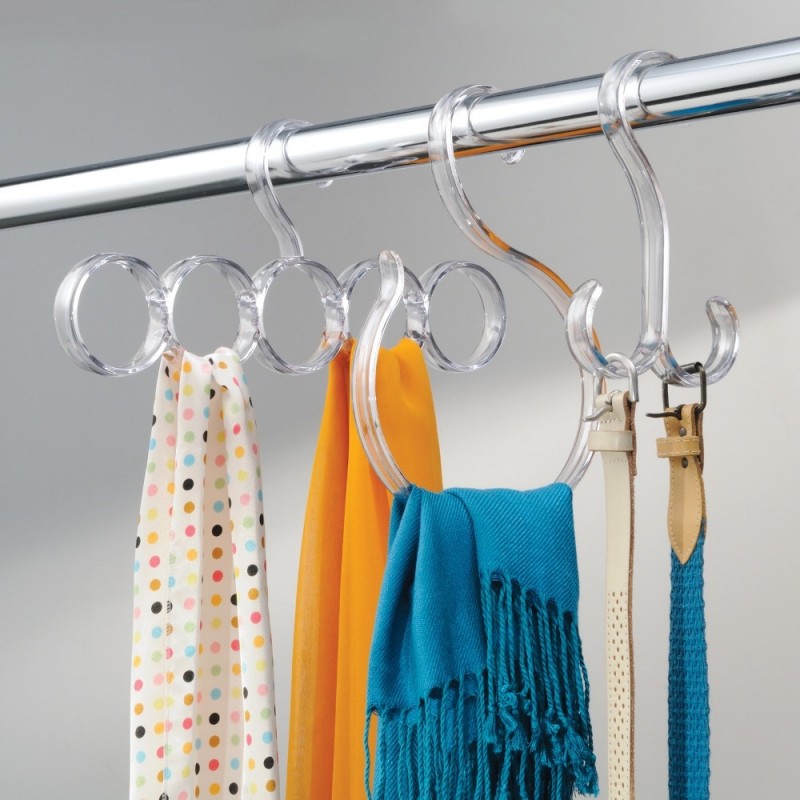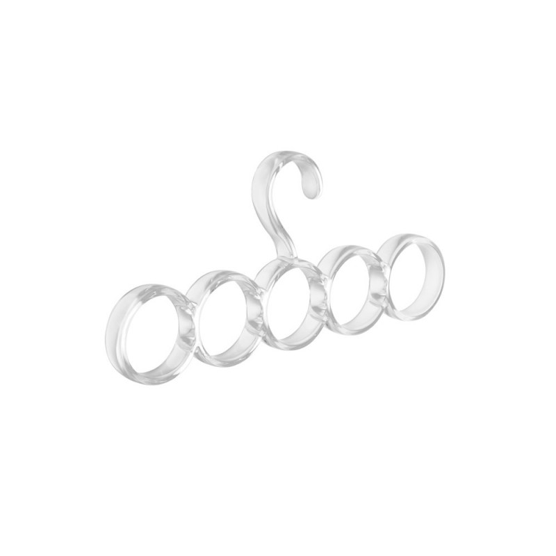 Предлагаем вашему вниманию оригинальную и стильную вешалку для аксессуаров. Она изготовлена из прозрачного пластика, имеет 5 колец. Очень удобна для развешивания шарфов, платков, галстуков, ремней. С ней ваши вещи будут в идеальном порядке.