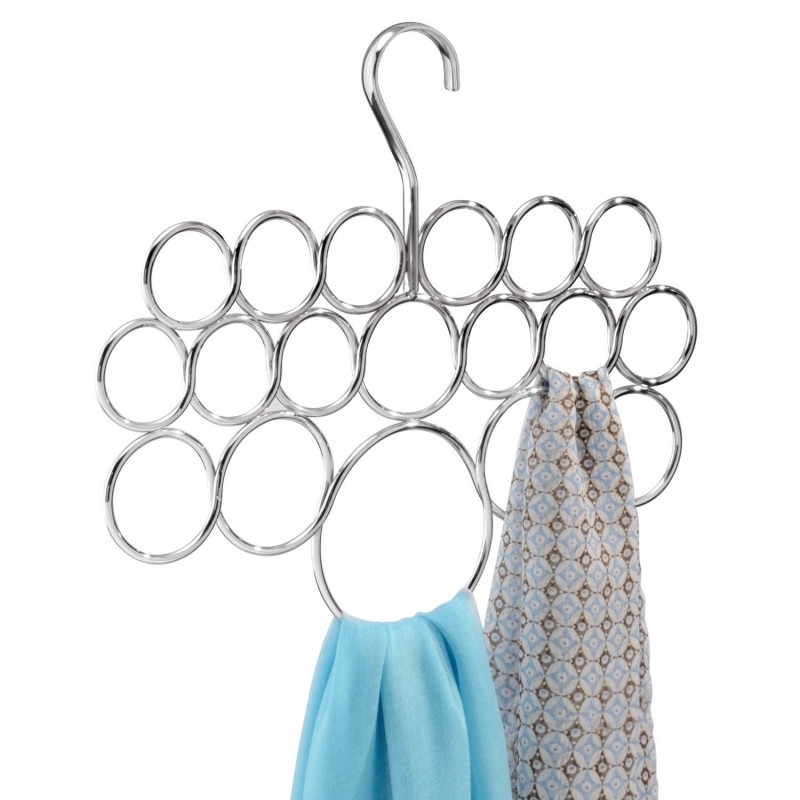 Вешалка-подвес для шарфов,ремней и галстуков на 18 колец. Оригинальный и современный дизайн нашей вешалки, позволит вам хранить ваши вещи очень компактно. Благодаря кольцам различного диаметра вы можете развешивать на ней вещи различного размера. Изготовленная из прочной стали она подойдет к любому интерьеру.