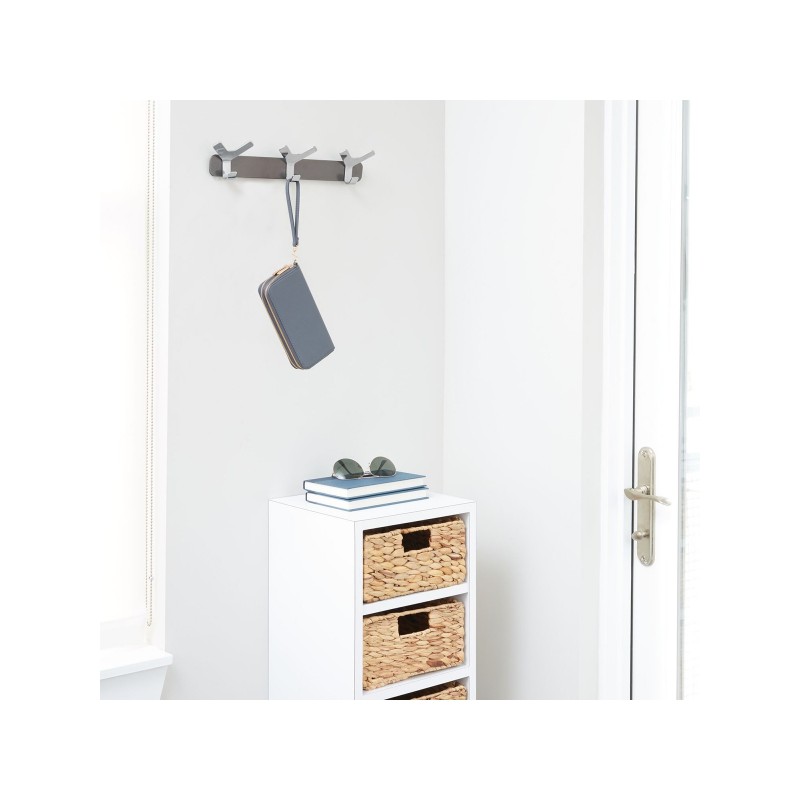 Настенная вешалка Yael оснащена тремя тройными крючками, она обеспечит хранение различных аксессуаров, таких как куртки, рюкзаки, шарфы, галстуки, ремни, халаты, полотенца и многое другое. Вешалка универсальна ее можно, использовать в шкафу, ванной, спальне, кладовой или в любой комнате дома, в которой вам нужна дополнительная организация. Просто установите его на любую стену с помощью прилагаемого оборудования. Прочная стальная конструкция сделана для ежедневного использования. Размер 40х6х8см.