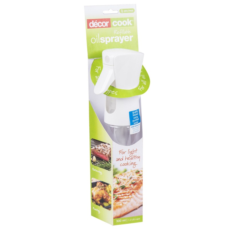 Многоразовый распылитель масла Décor Cook 300мл. Идеальный помощник на кухне! Подходит для приготовления барбекю, выпечки, заправки салатов, жарки, гриля и многого другого. Путем распыления можно нанести тонкий ровный слой масла. Используйте Ваши любимые масла самым здоровым способом! Характеристики: легкое распыление, отсутствие аэрозольных газов.