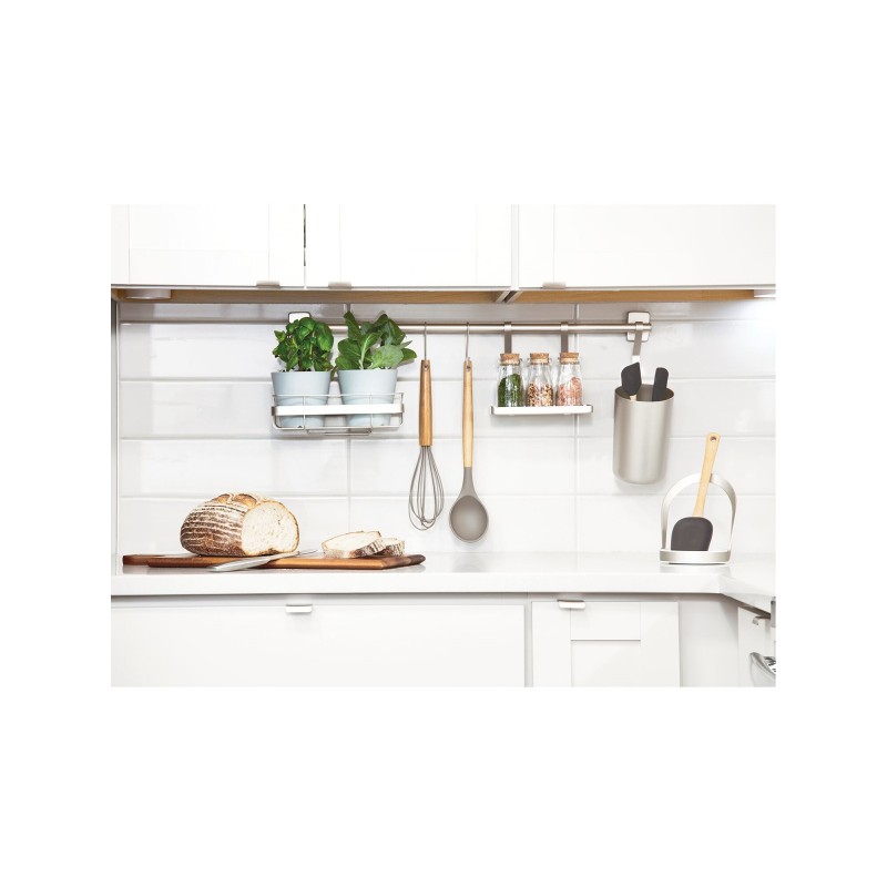 Этот органайзер с легкостью наведет порядок даже на самой маленькой кухне, где нет много места. Штанга крепится к стене, и ее очень удобно повесить под навесными кухонными шкафами.