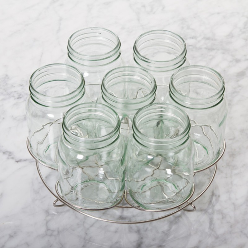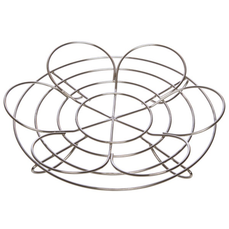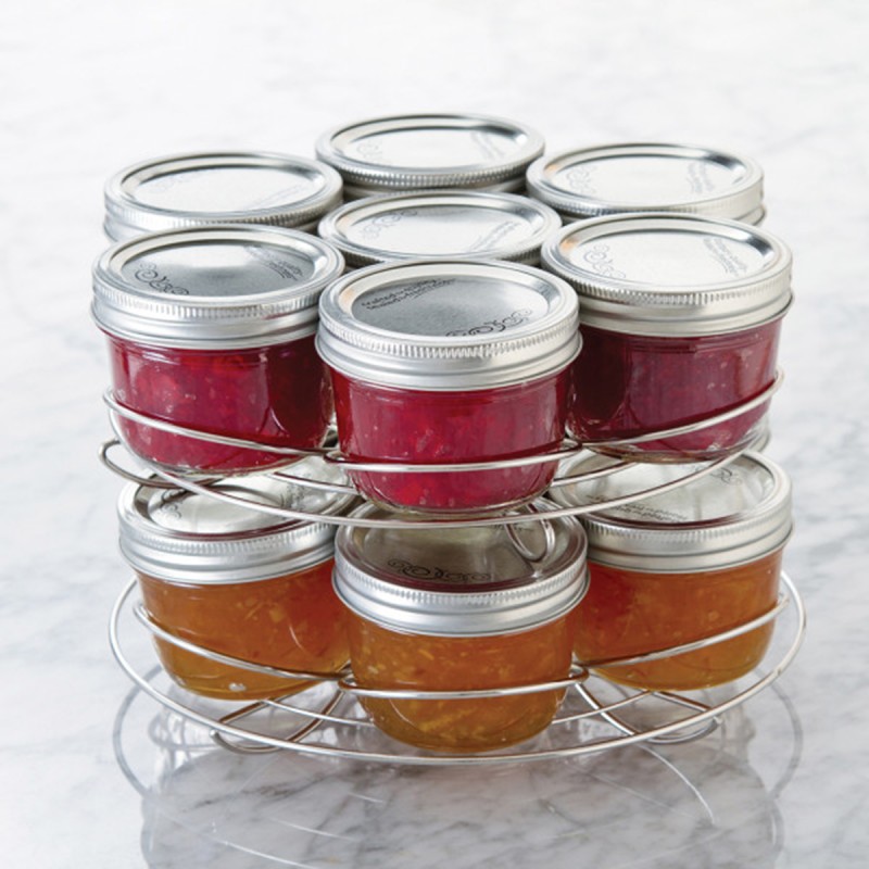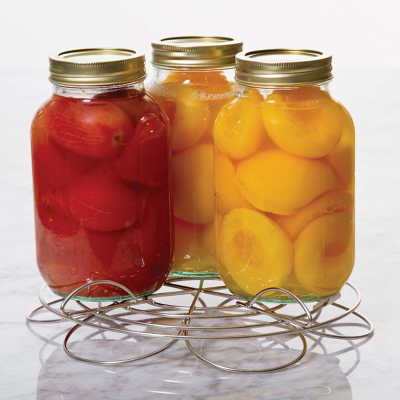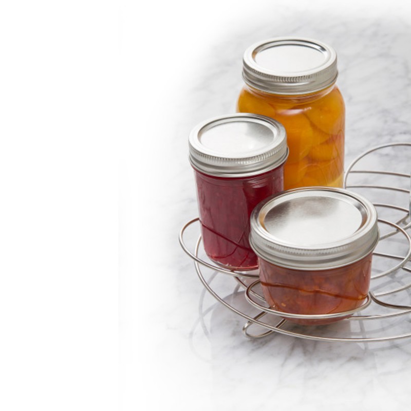 Благодаря функциональному цветочному дизайну наша подставка для консервных банок разделяет банки, чтобы снизить вероятность разбить их во время обработки. Подставка универсальна, поскольку она двусторонняя и может вмещать банки различных размеров. Одна сторона вмещает до четырех литровых банок, противоположная сторона может вместить семь банок размером 0,3л. Подставка подходит для большинства кастрюль. Материал нержавеющая сталь. Можно мыть в посудомоечной машине.
