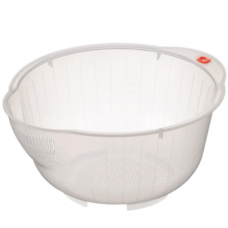 Дуршлаг незаменимый предмет в доме. Сделан из высококачественного пластика, экологичен и безопасен. Из особенностей, стоит обратить внимание на маленькие отверстия. Благодаря им, можно промыть продукты не просыпая их в раковину. Прекрасно подойдет в качестве фруктомойки.
