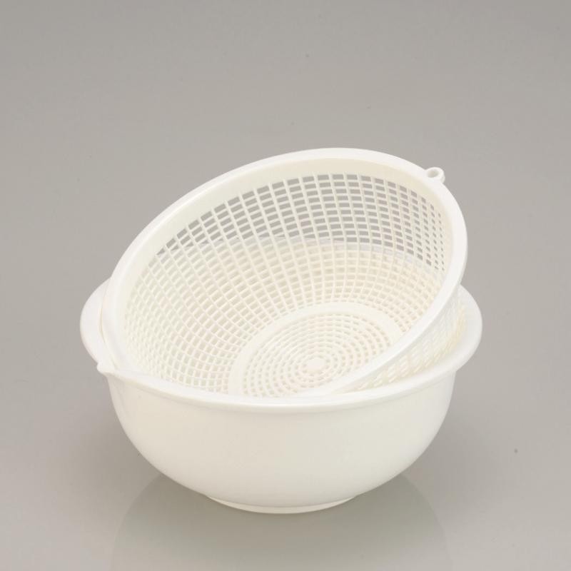 Inomata / Набор 2 предмета (миска + дуршлаг) 650мл БЕЛЫЕ (100491)