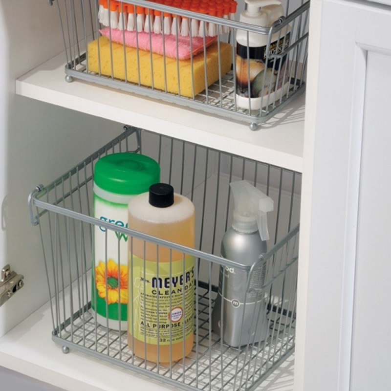 Корзина из хромированной стали очень удобна для хранения различных принадлежностей. Незаменимый предмет для организации пространства в шкафчиках. Легко моется губкой, а благодаря боковым рейкам может выдвигаться, за счет чего вы никогда не забудете, что у вас лежит в шкафах.