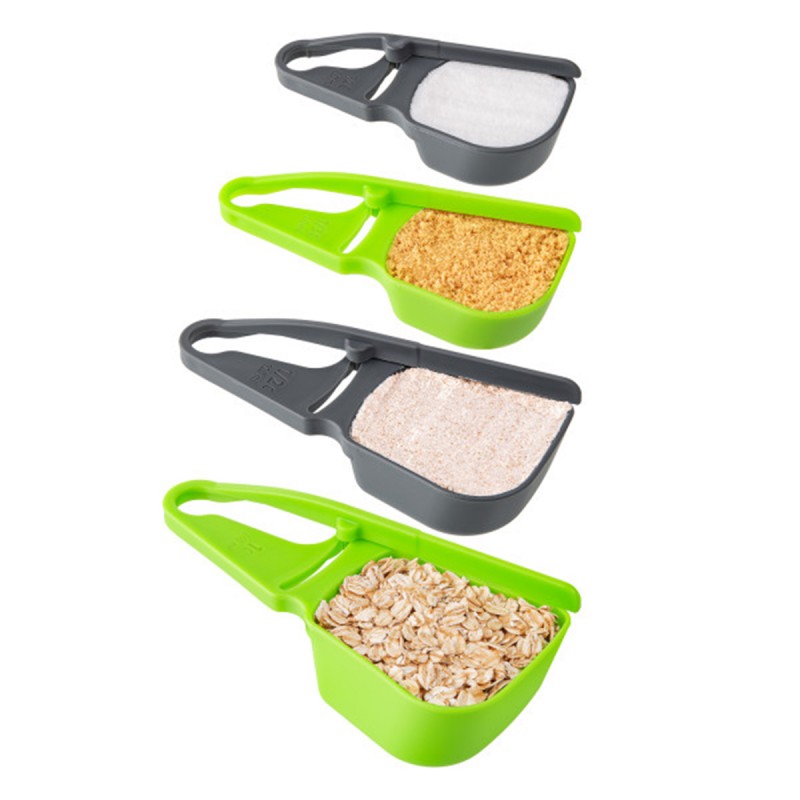 Получайте идеальные порции с помощью 4-х мерных стаканов. Одной рукой нажмите на «рычаг», чтобы содержимое стало идеально ровным! Набор для измерения включает стандартные меры, такие как 240мл 1 чашка, 120мл 1/2 чашки, 80мл 1/3 чашки и 60мл 1/4 чашки. Добавьте эти удивительные мерные стаканчики к кухонным инструментам для простых и точных измерений!