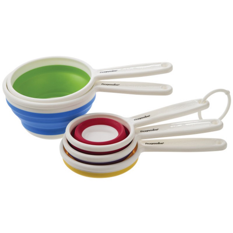 Наши складные мерные чашки складываются до ⅓ своей исходной высоты, экономя место для хранения и легко помещается в любой ящик. В набор входит кольцо для хранения. Легко читаемые стандартные и метрические измерения. Набор из пяти мерных стаканов включает стакан (50 мл), ⅓ стакана (80 мл), ½ стакана (120 мл), ¾ стакана (177 мл) и 1 стакан (240 мл). Легко выдвигать липкие ингредиенты, такие как коричневый сахар или масло. Не содержит бисфенол А. Можно мыть в посудомоечной машине.