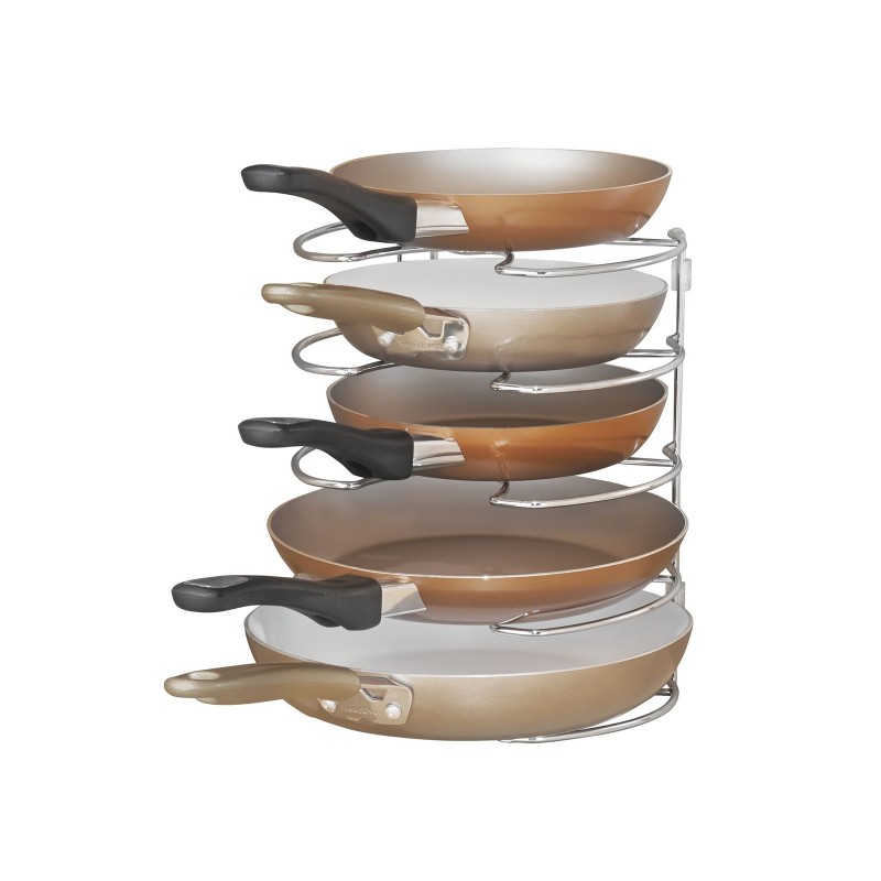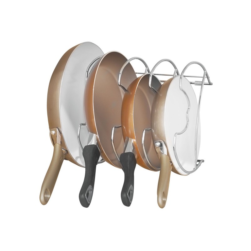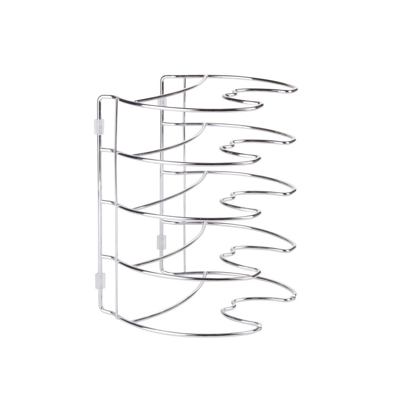 Держатель CLASSICO для хранения сковород в вертикальном или горизонтальном положении, защищает посуду от трещин и царапин. Он вмещает 5 сковородок и создает дополнительное пространство для хранения на вашей кухне. Изготовлен из стали с хромированной отделкой. Размер 27,9х23х19,8см.
