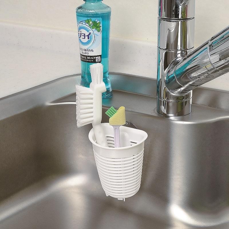 Держатель для чистящих щёток на присоске изготовлен из прочного, экологичного пластика. Представляет собой органайзер для кухонных принадлежностей. Станет незаменимым атрибутом в быту. Удобен в использовании, не занимает много места.