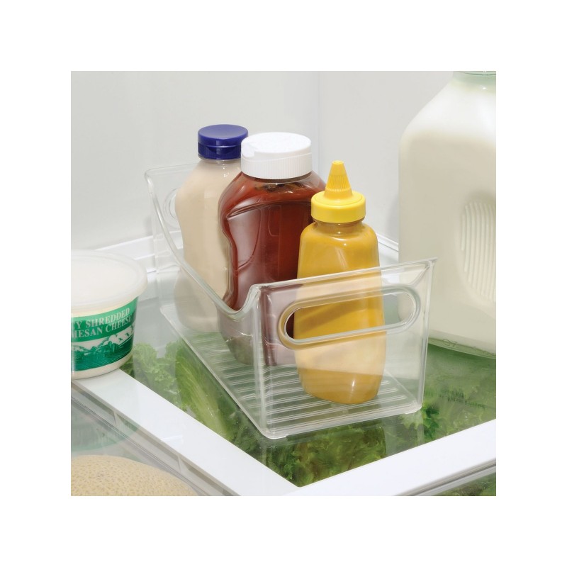 С помощью этого контейнера вы без труда наведете порядок в вашем холодильнике, в кладовой или в кухонных шкафах. Контейнер имеет удобную вогнутую в центре форму, а с боков оснащен двумя ручками для переноски.