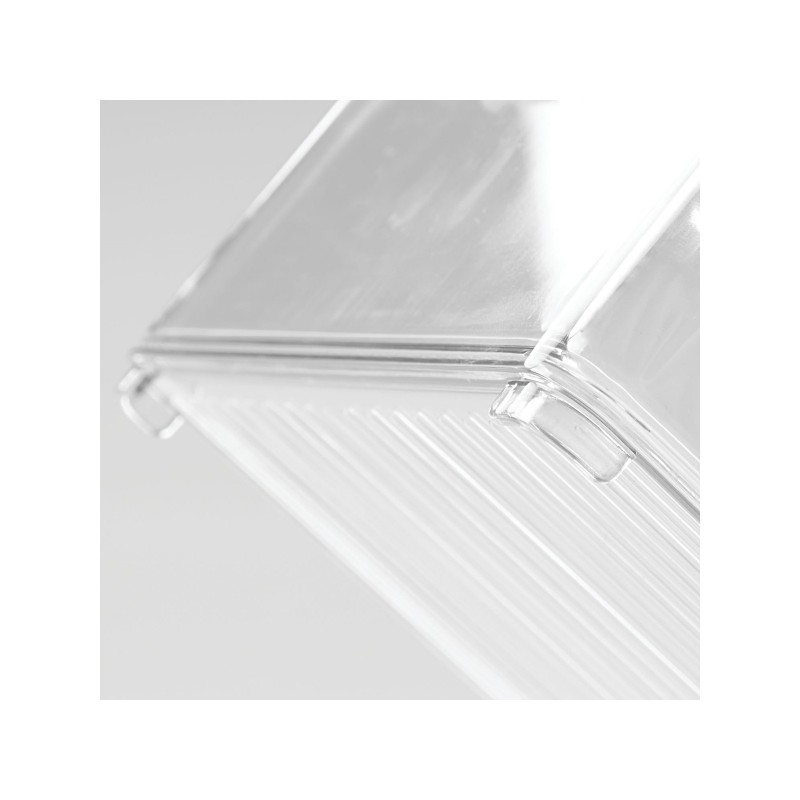 В передней части есть удобная ручка, за которую контейнер можно выдвигать. К тому же, можно поставить несколько контейнеров один на другой благодаря особой конструкции дна и верха.