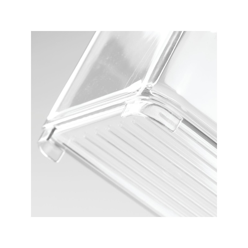 В передней части органайзер имеет удобную ручку, благодаря которой его можно выдвинуть. Прозрачный пластик позволит вам всегда увидеть все содержимое. Ко всему прочему, пластик абсолютно безопасен и экологичен, и подходит для хранения именно пищевых продуктов.