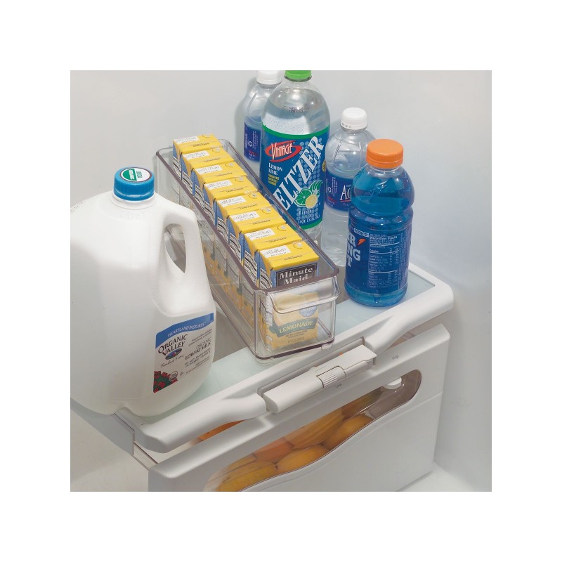 Этот удлиненный контейнер раз и навсегда наведет порядок в холодильнике или в кладовой. В нем можно хранить пакеты с соками, баночки с напитками, бутылочки с соусами, упаковки со специями и любые другие продукты питания или предметы.