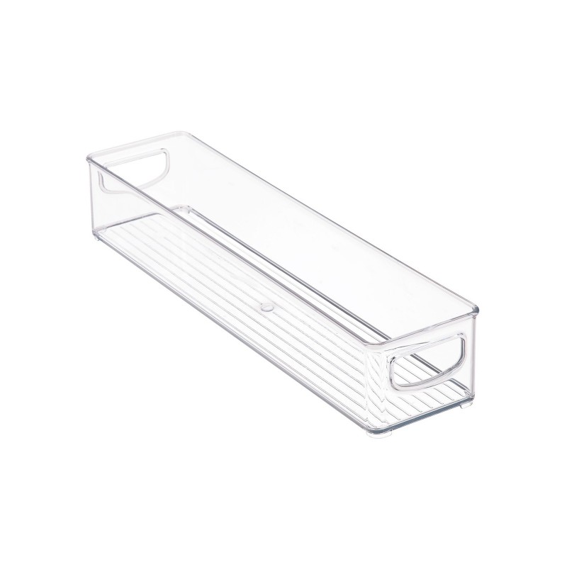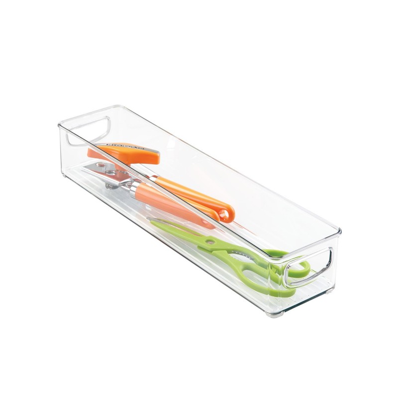 Этот сверхдлинный контейнер для хранения от InterDesign поможет свести к минимуму беспорядок и держать предметы удобно размещенными. Сделанный из прочного прозрачного качественного пластика, он идеально подходит для хранения кухонной утвари. Включает в себя встроенную ручку. Отлично подойдет не только на кухне, в шкафу или морозильной камере, но и в ванной комнате или офисе.Размер 40,6х10х7,6см.