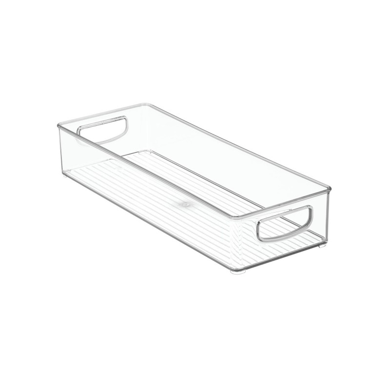 Контейнер Binz от InterDesign отлично подходит для организации пространства в кухонных шкафах и хранения продуктов в холодильнике. В нем удобно разместить упаковки, коробки, банки с продуктами. Его также можно использовать для хранения кухонной утвари, предметов домашнего обихода. Контейнер изготовлен из прочного прозрачного пластика, что позволяет с легкостью видеть ваши предметы, имеет встроенные ручки. Размер 40,6х15х7,6см.
