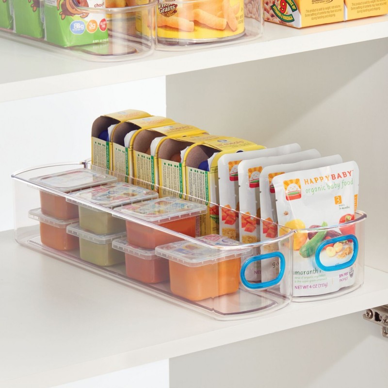 Эргономичный контейнер IDjr от InterDesign станет решением в вопросе организации хранения детских смесей, коробок для сока и закусок. Легко установить в шкафу или на кухонной столешнице. Разделение на два отделения позволяет рассортировать содержимое. Две удобные ручки на передней панели делают его легким в эксплуатацию: удобно выдвигать, если хранится на верхней полке шкафа.