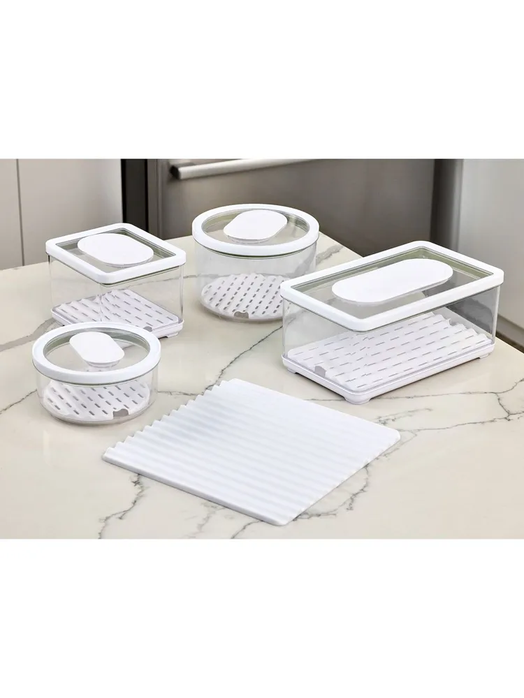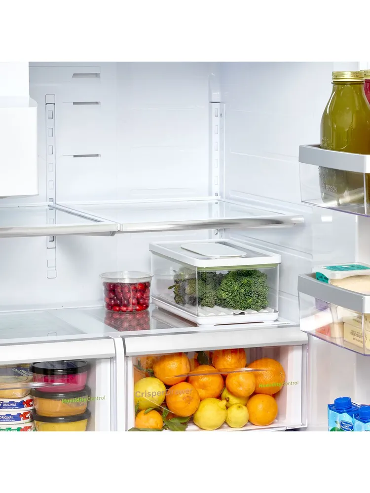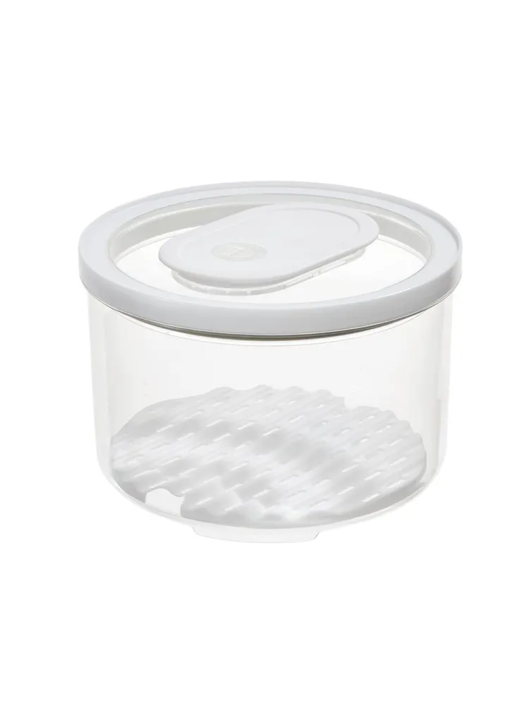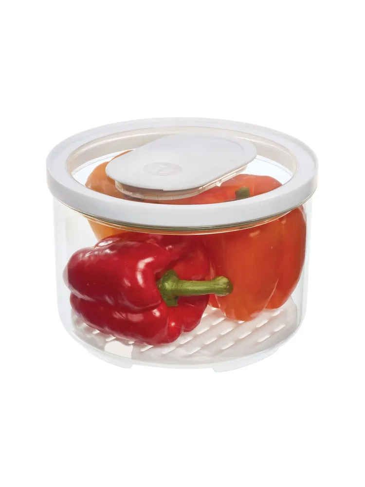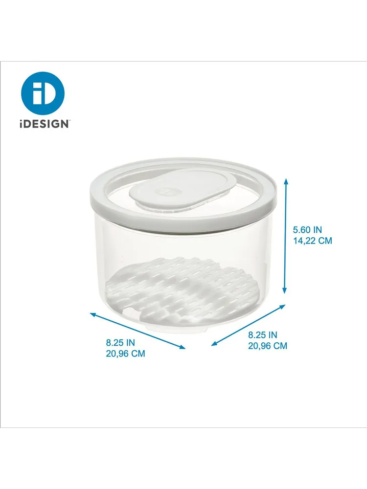 Этот экологически чистый контейнер iDesign IDFRESH предназначен для сохранения свежести продуктов и продления срока годности ваших любимых фруктов и овощей. Крышка со встроенным вентиляционным отверстием позволяет регулировать и контролировать влажность внутри контейнера, а нижнее отделение можно заполнить водой для обеспечения дополнительной влажности. Съемная ребристая вставка уменьшает возможность повреждений нежной поверхности фруктов и обеспечивает дополнительный поток воздуха, сохраняя продукты, хранящиеся внизу, такими же свежими, как и продукты сверху. Контейнер можно использовать как в холодильнике, так и на столе для фруктов и овощей, которым нужно время для созревания. Прозрачные стенки позволяют легко видеть предметы, хранящиеся внутри, и его можно штабелировать с дополнительными контейнерами из коллекции IDFRESH. Его можно мыть в посудомоечной машине для быстрой и легкой очистки. Этот многоразовый контейнер изготовлен из переработанного пластика, не содержащего бисфенол А, что обеспечивает более экологичный вариант хранения. Диаметр 21см, высота 14см.