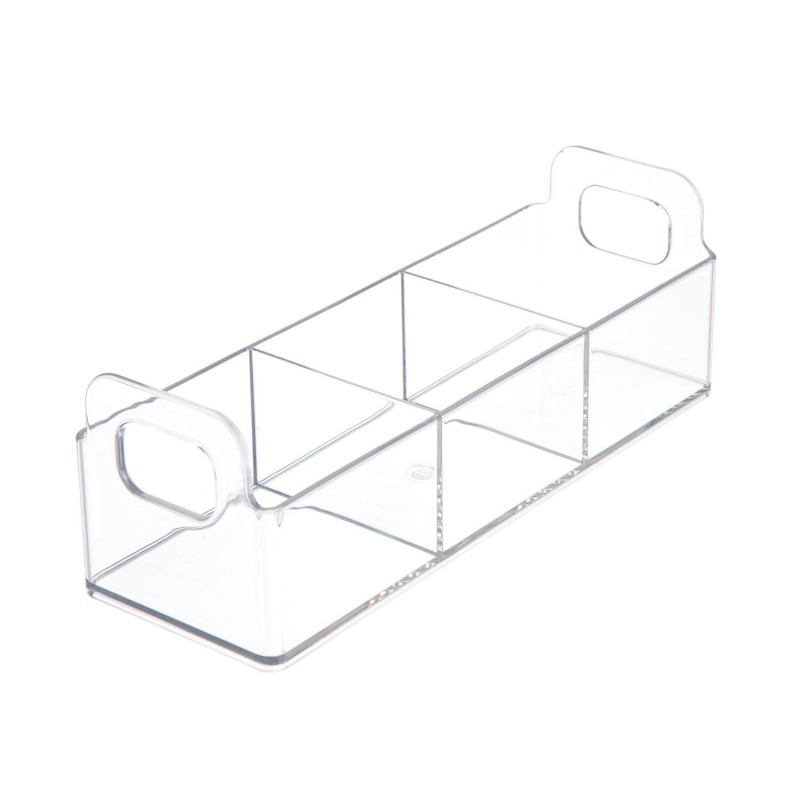 Органайзер с ручками для хранения универсальный. Благодаря прозрачному корпусу имеет нейтральный вид, что помогает ему вписаться в любой интерьер. Благодаря разделению от отсеки можно хранить предметы по категориям. А оснащенность ручками делает его удобным предметом.
