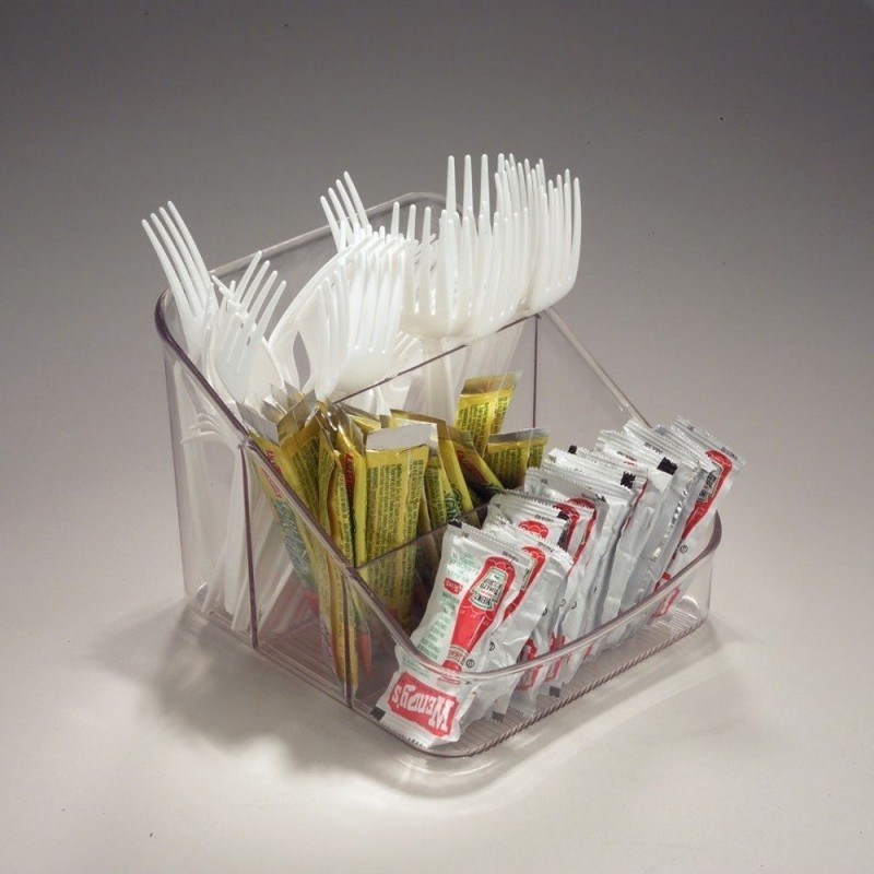 Удобное решение для хранения чайных пакетиков, кофе или пакетиков с сахаром. Наш органайзер можно также поставить на стол. Он имеет отделения разной высоты и изготовлен из прозрачного пластика, что поможет вам быстро найти нужную вам вещь.