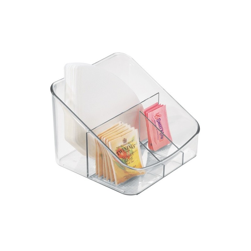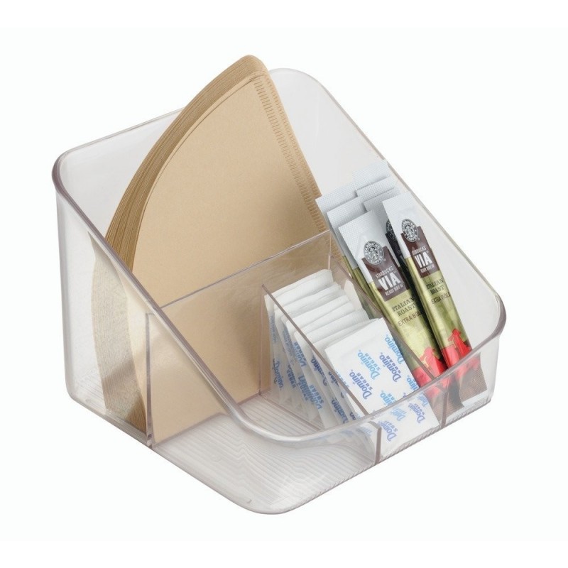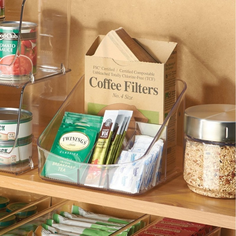 Удобное решение для хранения чайных пакетиков, кофе или пакетиков с сахаром. Наш органайзер можно также поставить на стол. Он имеет 4 отделения разной высоты и изготовлен из прозрачного пластика, что поможет вам быстро найти нужную вам вещь.