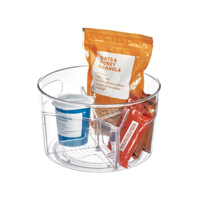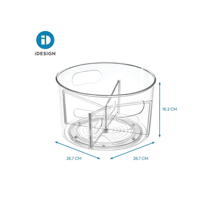 Вращающийся органайзер Linus включает четыре съемных разделителя, которые можно реорганизовать пятью различными способами для обеспечения индивидуального хранения. Конструкция с открытым верхом и выступающими сторонами обеспечивает легкий доступ к элементам и предотвращает их выпадение при повороте органайзера. Идеально подходит для использования на кухне, в ванной, спальне, офисе или в любом месте. Прочная пластиковая конструкция, легко моется мягким мылом. Размер 26,7х26,7х16см.