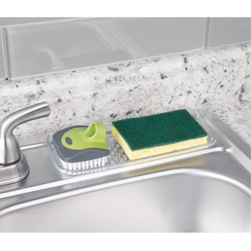 Поднос-органайзер для губок, скребков, мыла от InterDesign серии Sinkworks - отличное решение на любой кухонной раковине. Этот лоток, сделанный из прочного прозрачного пластика, служит для хранения губок, чистящих средств и мыла в одном удобном месте. Защищает площадь вокруг раковины от мыльного налета и воды. Поможет сохранить порядок и чистоту.