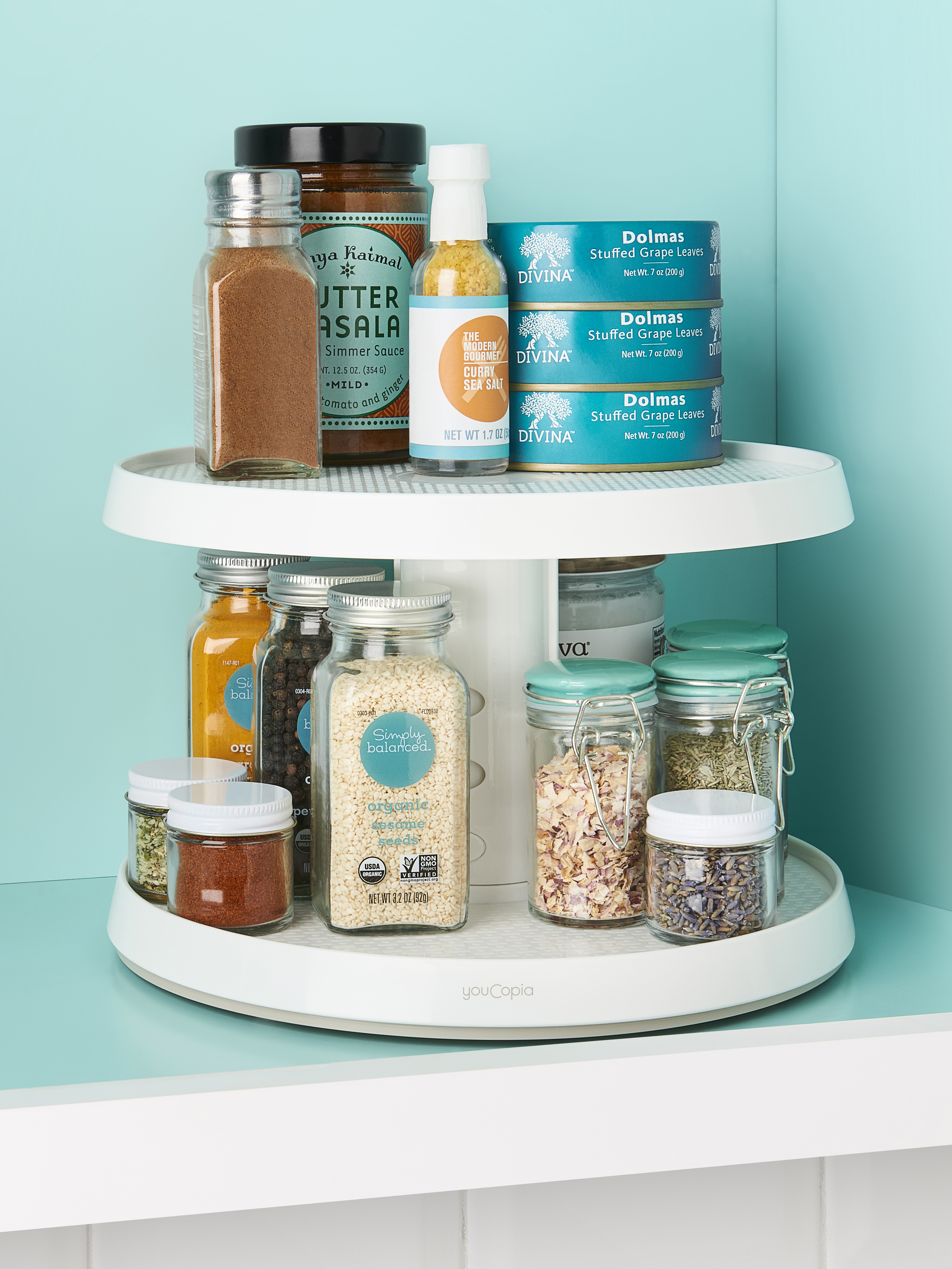 Подставка Crazy Susan 2-х уровневая регулируемая по высоте вращающаяся 26.7х26.7х17.5-22.6см (101520)