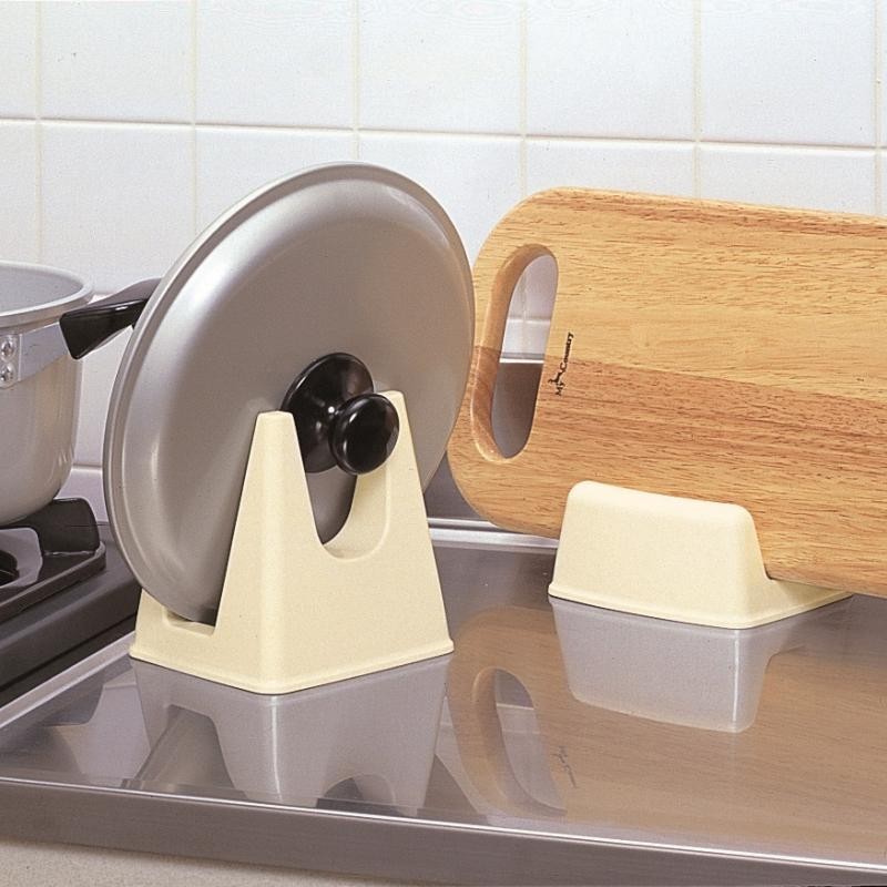 Подставка для крышек и досок. Такой аксессуар способен организовать порядок и чистоту на кухонном столе, вода стекает с крышки и остается в углублении подставки. Подходит для любых размеров крышки, разделочных досок. Материал прочный, благодаря этому прослужит вам не один год. Удобна в использовании, не занимает много места.