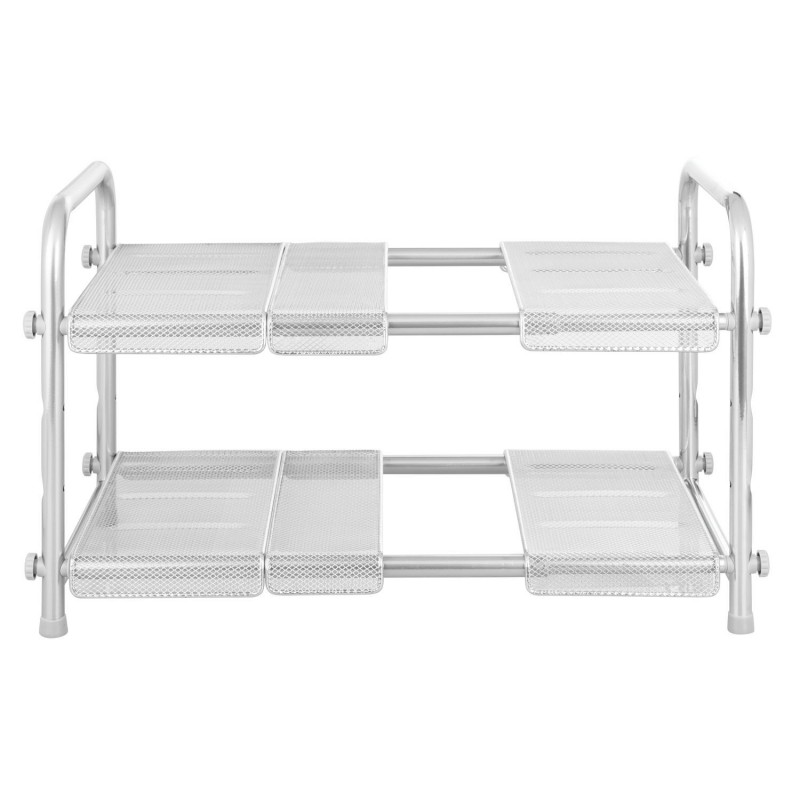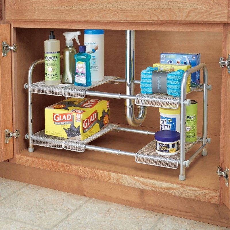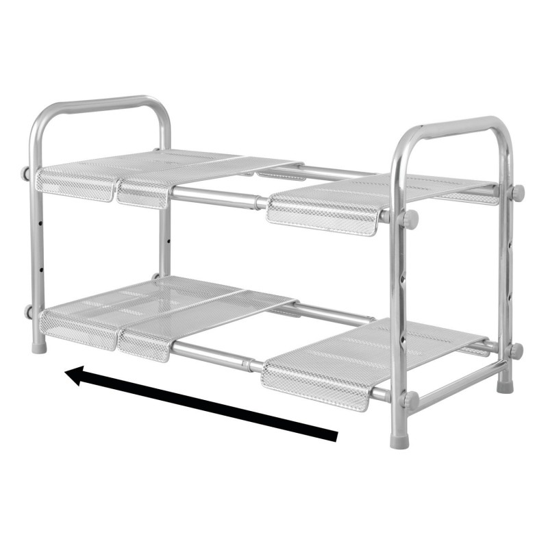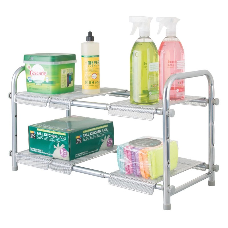Полка раздвижная в шкафчик под мойку от бренда InterDesign. Поможет увеличить пространство даже в самых маленьких шкафах, что максимизирует пространство для хранения в ваших шкафах. Расширяется для размещения посуды большего размера и может использоваться для создания удобной многоуровневой системы хранения.Выполнена из стали с серебряной отделкой