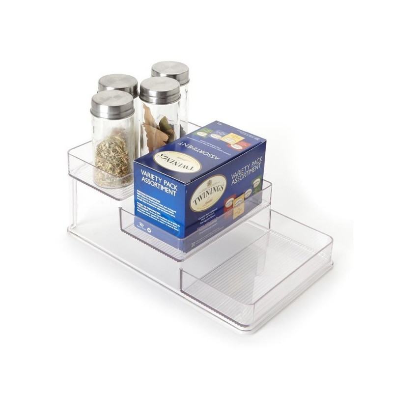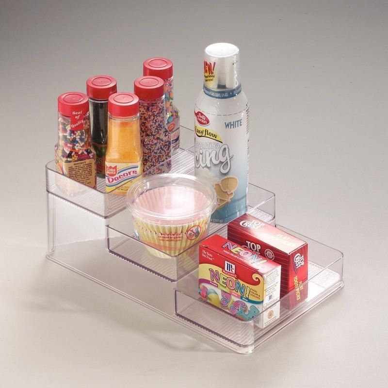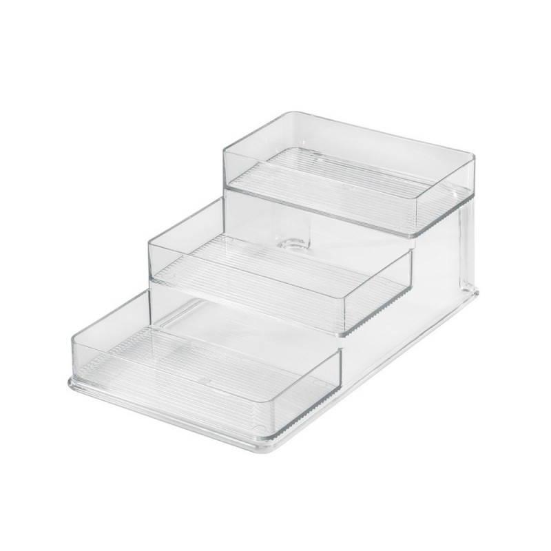 Для более удобного хранения мелких емкостей и специй в шкафу предлагаем нашу трехъярусную подставку для специй. Благодаря тому что она изготовлена из прозрачного пластика и имеет три разных уровня вы легко сможете найти нужные специи, лекарства или витамины.
