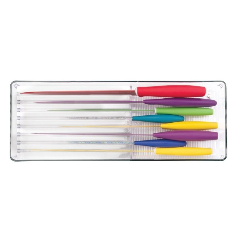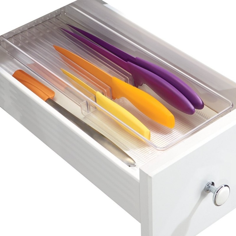С помощью этого лотка, который служит для хранения ножей в выдвижных ящиках, вам не придется тратить свое время для поиска того или иного ножа. Теперь они хранятся правильно и всегда под рукой. Изготовлен из современного, прочного пластика, прост в использовании и в случае необходимости легко моется.