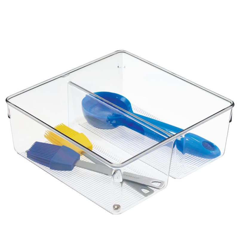 Двойной разделенный лоток Linus поможет организовать пространство в кухонных ящиках и не только. Он изготовлен из прочного прозрачного пластика и подходит для большинства стандартных ящиков. Он отлично подходит для хранения столового серебра, шпателей, кухонных гаджетов, офисных, банных принадлежностей, предметов рукоделия. Размер 20.3х20.3х7.6см.