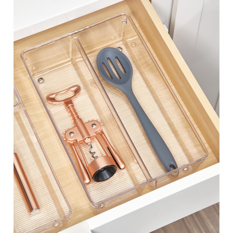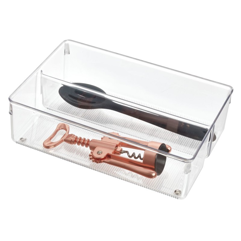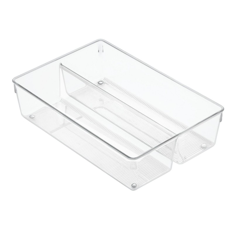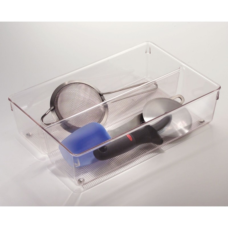 Максимально используйте пространство для хранения с помощью лотка Linus. Этот низкопрофильный лоток имеет два отделения для хранения и размещения столового серебра, столовых приборов, шпателей и многого другого в ящиках кухни и кладовой. Благодаря прозрачным сторонам и открытому верху содержимое всегда видно и доступно, а нескользящие ножки удерживают лоток на месте и предотвращают его скольжение при открытии и закрытии ящика. Его также можно штабелировать, чтобы максимально увеличить пространство для хранения. Этот универсальный лоток можно использовать в ванной, спальне, офисе или в любой комнате дома, где вам нужна дополнительная организация. Лоток изготовлен из прочного прозрачного пластика, не содержащего бисфенол А, долговечен и легко моется с помощью мягкого мыла и воды. Размер 30.4х20.3х7.6см.